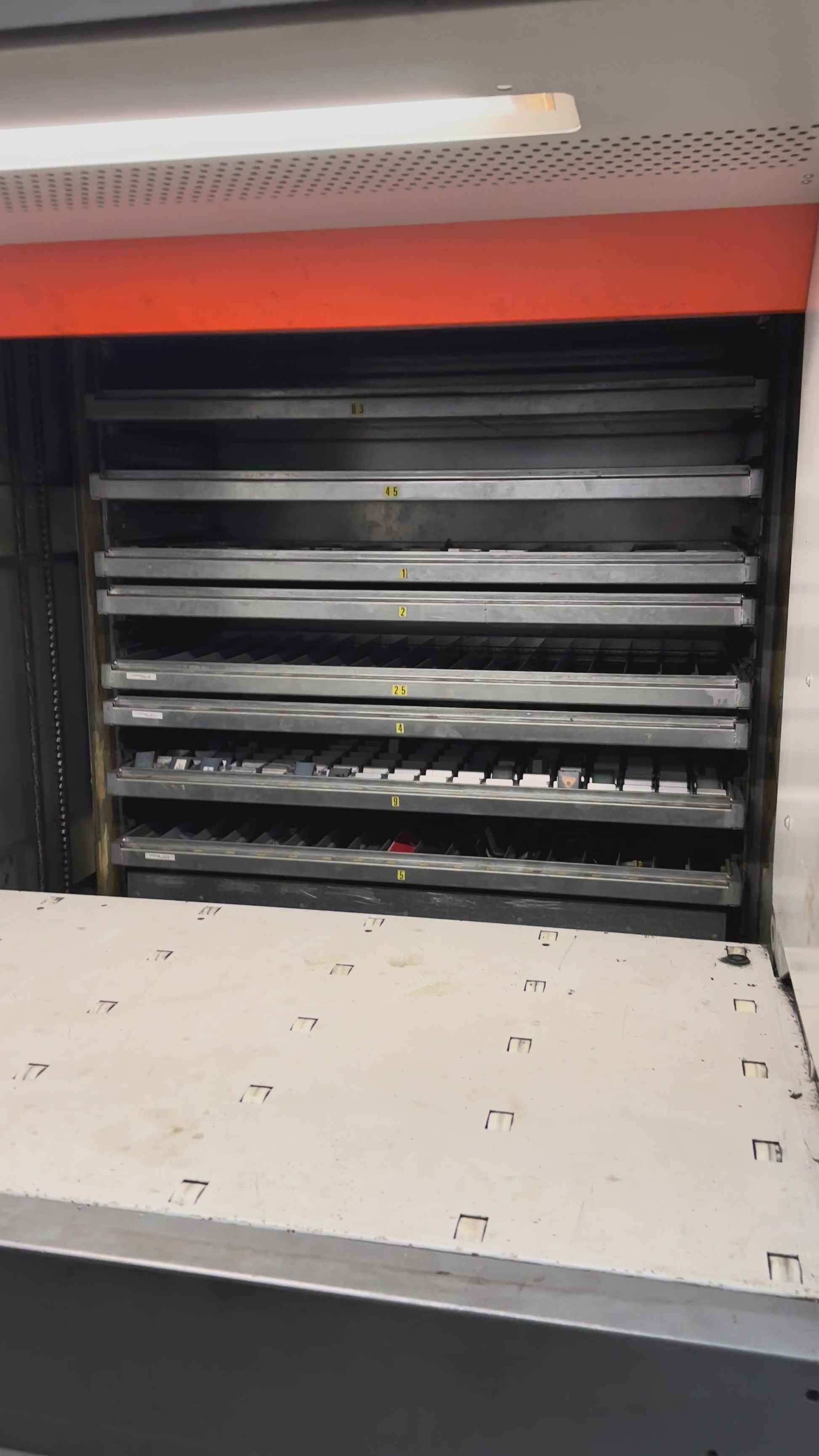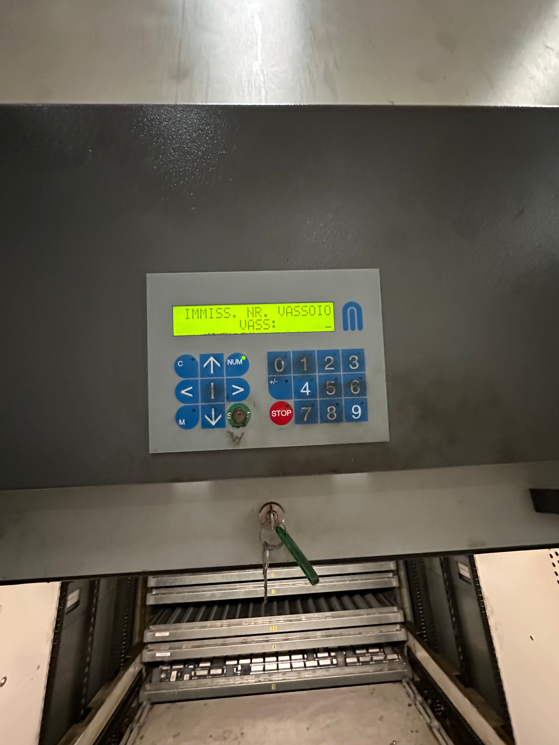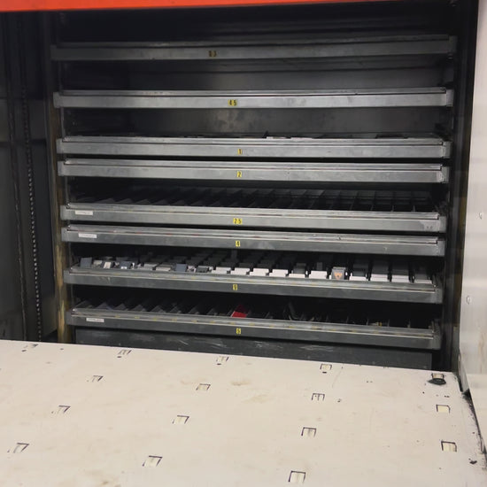 Vendiamo magazzino verticale automatico MEGAMAT completo di vassoi, ideale per organizzare minuteria, utensili e ricambi riducendo spazio a terra e tempi di prelievo.